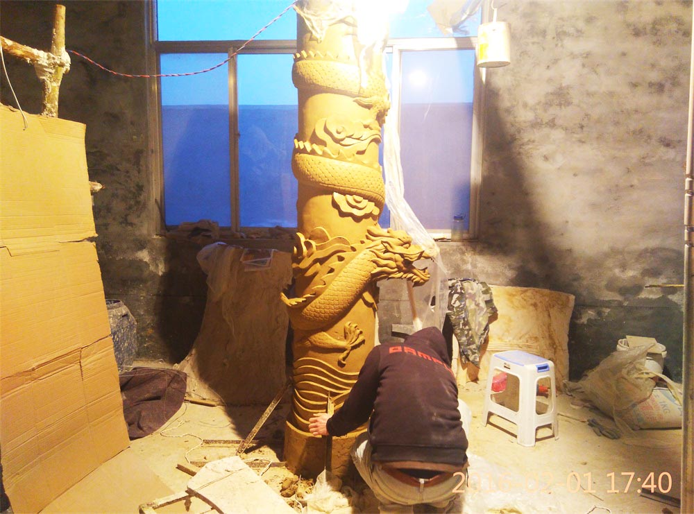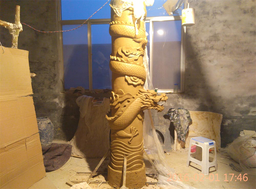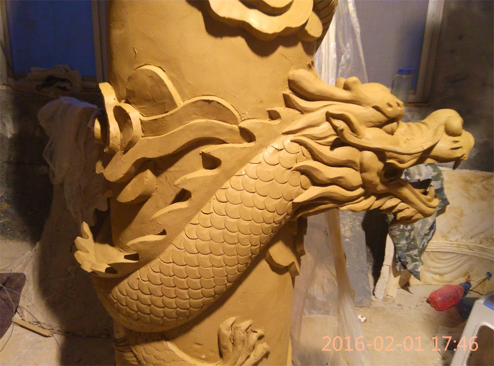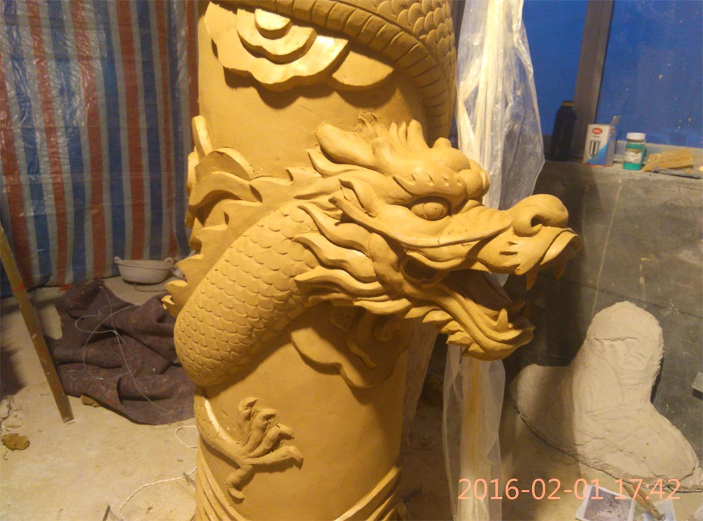 玻璃鋼龍柱雕塑泥塑完成(組圖)